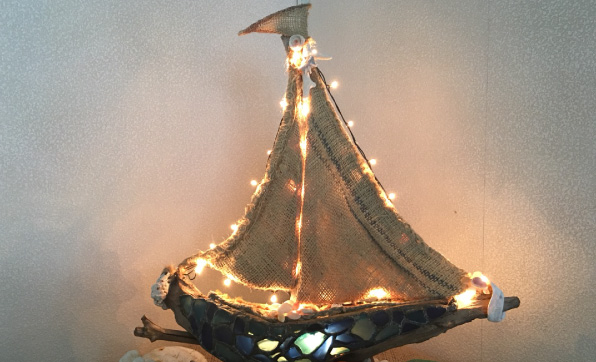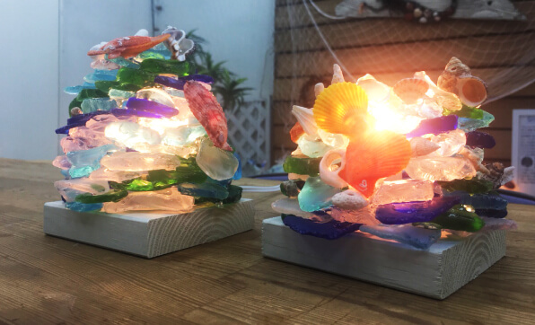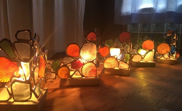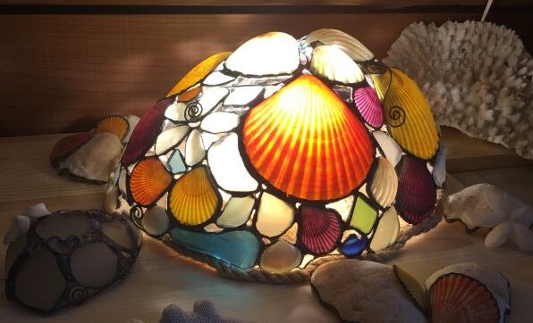 透明感が美しい、マリングラスを使ったランプシェード作りです。