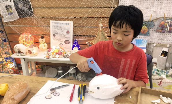 渚にたどり着いた、貝殻・珊瑚・流木などの漂着物を使って、オリジナルの作品作りに挑戦しませんか。
