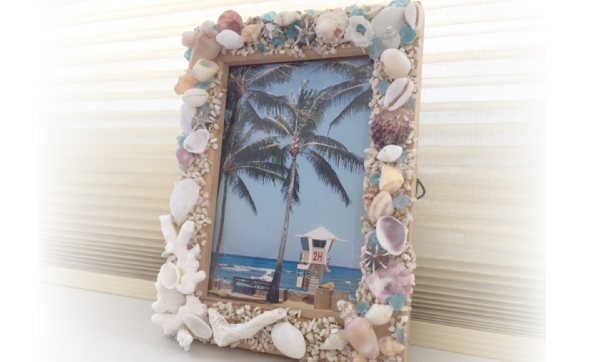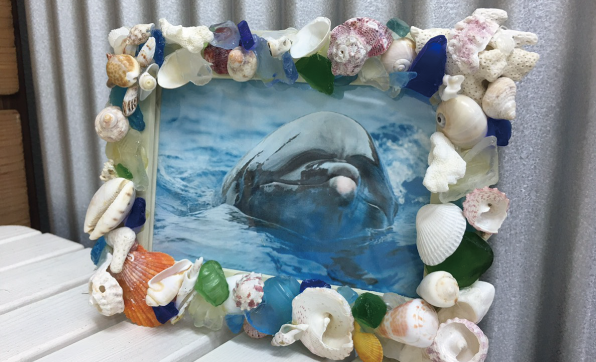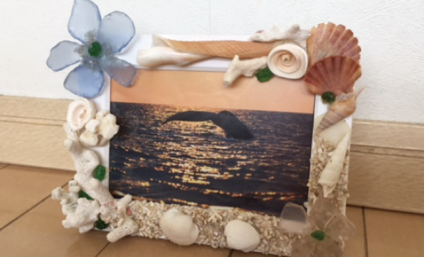海岸に流れ着いた貝殻やマリンガラスを使ってオリジナルフォトフレームを作りましょう!