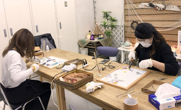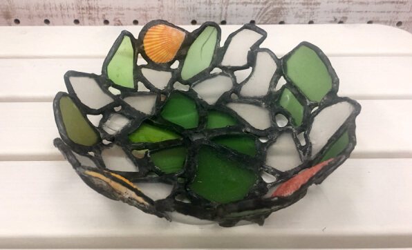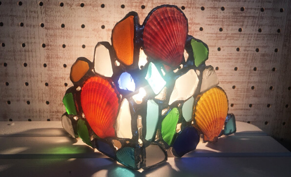 貝殻やマリングラスをはんだ付けして、ステンドグラス風に加工しましょう!